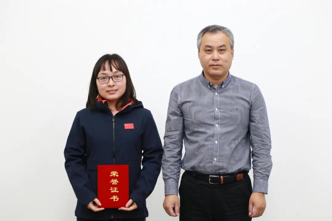 田國承宣讀凱博科技2021年度表彰文件,與會(huì)領(lǐng)導(dǎo)為優(yōu)秀員工頒獎(jiǎng)。