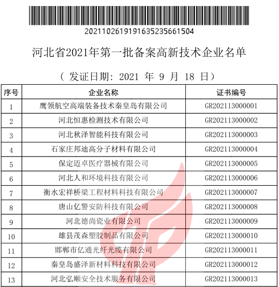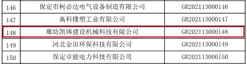 2021年10月27日,科技部火炬中心公示了《河北省 2021 年第一批備案高新技術企業名單》,廊坊凱博建設機械科技有限公司順利通過河北省高新技術企業認定。高新技術企業的取得,將進一步推動公司自主創新、自主研發的進程,從而快速推動公司產業化經營。同時,公司將充分發揮高新技術企業的引領作用,積極創新、突破自我,為公司高質量可持續發展提供科技支撐。