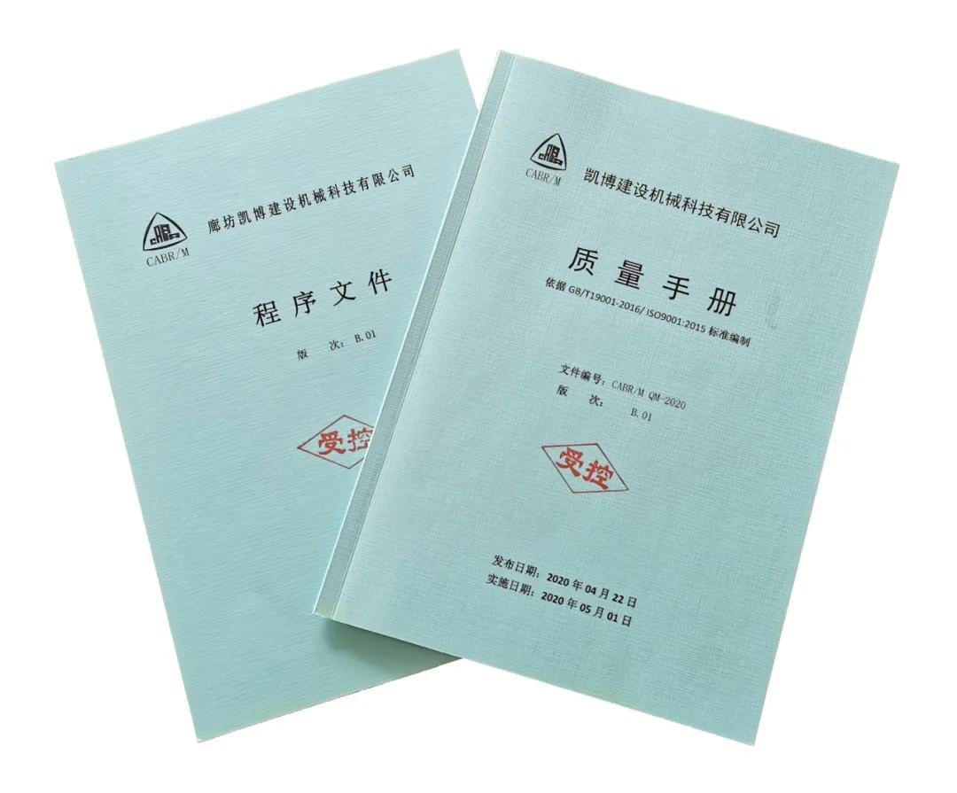 2020年12月7日,廊坊凱博建設機械科技有限公司IS09001質量管理體系年審工作正式啟動。在各有關部門的積極配合下,來自華夏認證中心有限公司的質量管理體系認證專家組對凱博公司管理體系運行情況以及人力資源、經營管理、技術研發、生產制造、物資供應、質量控制等各個環節進行了全面嚴格的審查。經過為期4天緊鑼密鼓、認真細致的工作,專家組一致認為凱博公司通過本次監督審核。本次質量體系認證范圍較之前還增加了混凝土布料機、導架爬升式工作平臺、快架塔、多功能鉆機等項目。